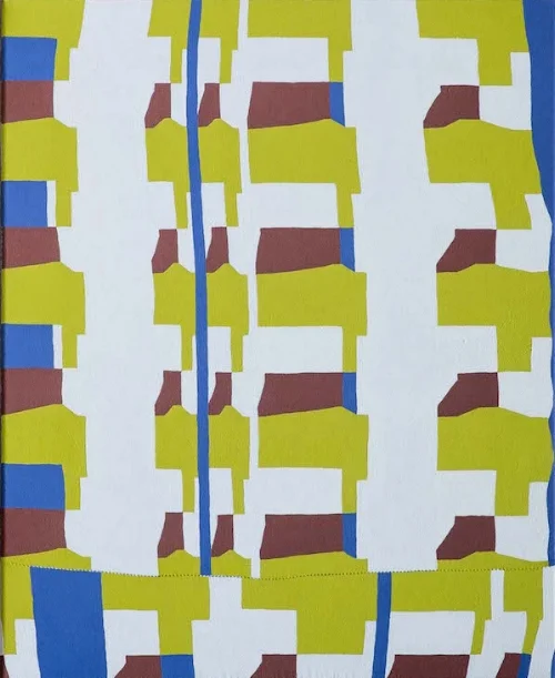 Convex Patchwork, acrylic on patterned fabric, 40x30, 2016